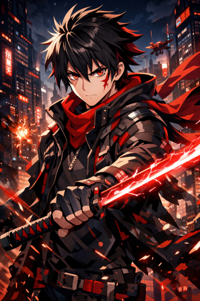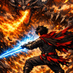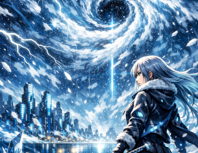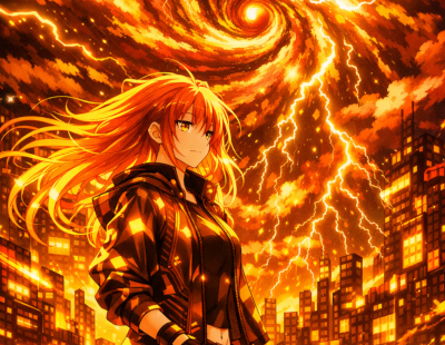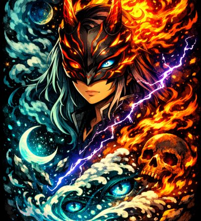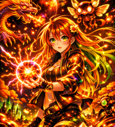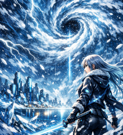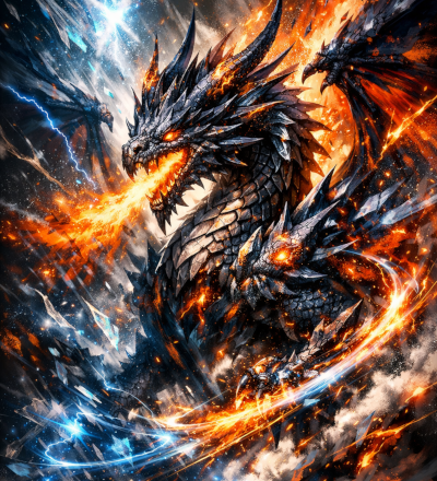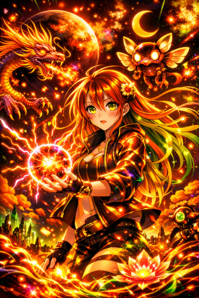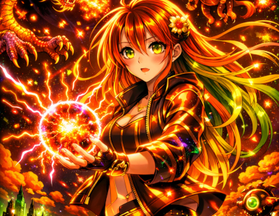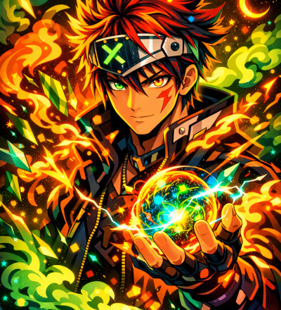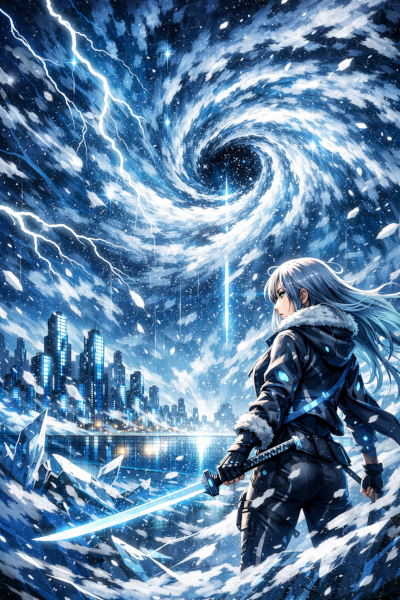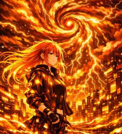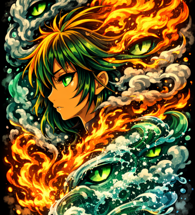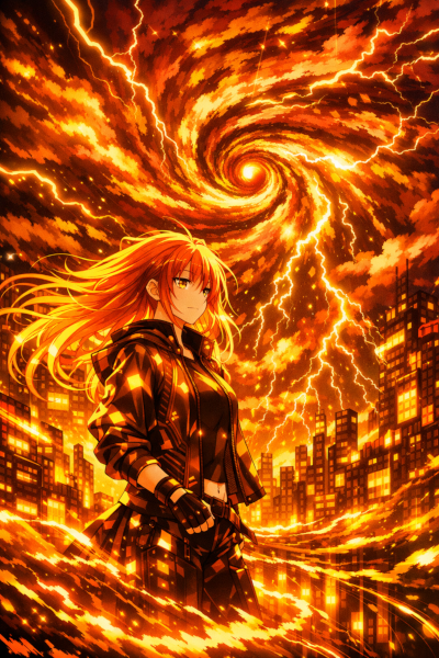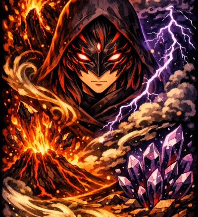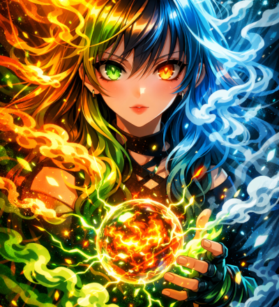 Abstract Ice And Fire With Lightning Effect Anime Spell Caster