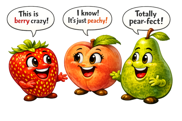 comiccutefoodfruitsfunnyhumorpeachpearstrawberryTalking