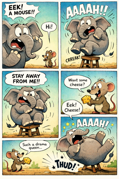 Elephant Scared of Mouse Comic