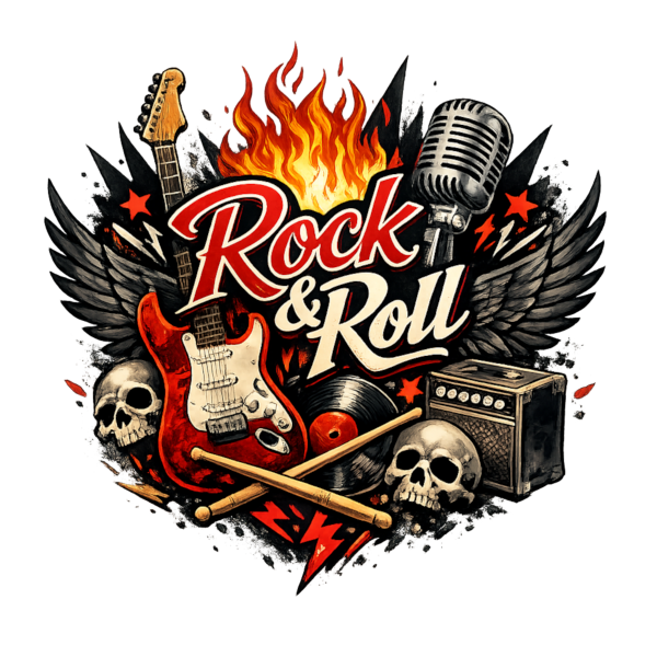 Click here to see products with Rock & Roll Guitar with Skulls and Wings by Ricky’s Fun Shop | Redbubble