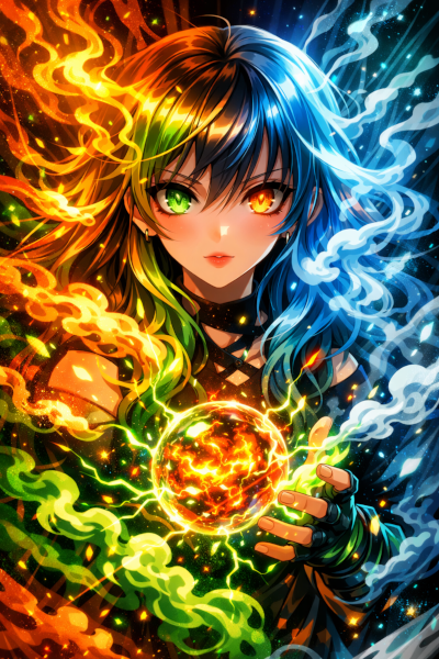 Elemental Fusion Abstract Anime Girl With Sphere
