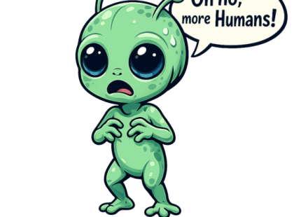 Green Alien Scared of Humans “Oh no, more Humans!”
