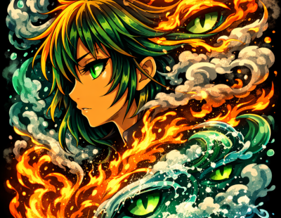 Abstract Anime Water With Fire Hybrid Design